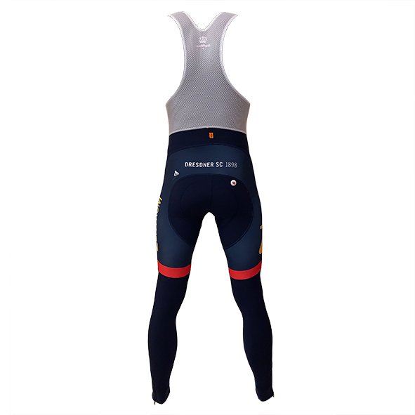 Jeder Radsportler kennt Roubaix und fast jeder kennt Superroubaix, ein Stoff, der von einem italienischen Hersteller für die oftmals winterlichen Bedingungen bei den Frühjahrsklassikern entwickelt wurde. Von vielen Mitbewerbern wurde versucht, diesen Stoff zu kopieren. Bei Thermoroubaix handelt es sich nicht um einen weiteren Kopierversuch, sondern um eine Weiterentwicklung des gleichen Stoffherstellers. Im Gegensatz zu Superroubaix enthält Thermoroubaix auch noch einen Anteil an Polyester, was den Einsatzbereich auch für tiefere Temperaturen möglich macht und außerdem den Feuchtigkeitstransport verbessert.Dank des innen angerauten Stoffes, kann die Winterhose für Temperaturen bis zum Gefrierpunkt eingesetzt werden.Unsere lange Radhose Thermoroubaix ist an den Beinenden und am Bauch mit Reißverschlüssen versehen. Die Reißverschlüsse an den Beinen verbessern den Komfort beim An- und Ausziehen, der Reißverschluss am Bauch erlaubt es, die Hose höher zu schneiden und so bessere Isolation zu ermöglichen.Der Kniebereich ist anatomisch vorgeformt und passt sich so optimal auf die Radposition an.Die Träger werden aus einem Netzstoff gefertigt, natürlich ist auch diese Hose durchgängig mit Flachnähten verarbeitet und kommt ohne eine Naht an der Oberschenkelinnenseiten im Sattelbereich aus.